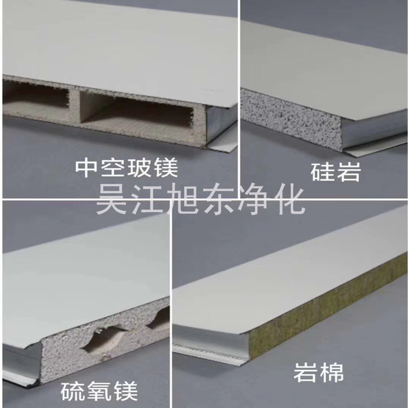 净化夹芯板是304/2b不锈钢板为面材,自熄型聚苯乙烯、岩棉、聚氨脂、纸峰窝等为芯材,用热固化胶在连续成型机内热加压复合而成的超轻建筑板材。